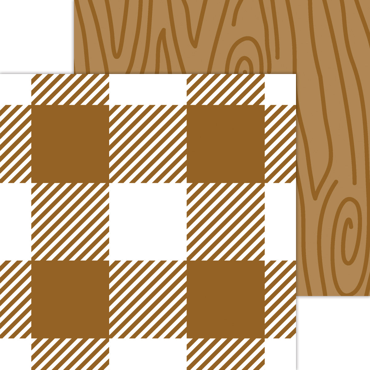 Doodlebug Petite Prints: 7081 Buffalo Check-Woodgrain Bon Bon (Single Sheet)