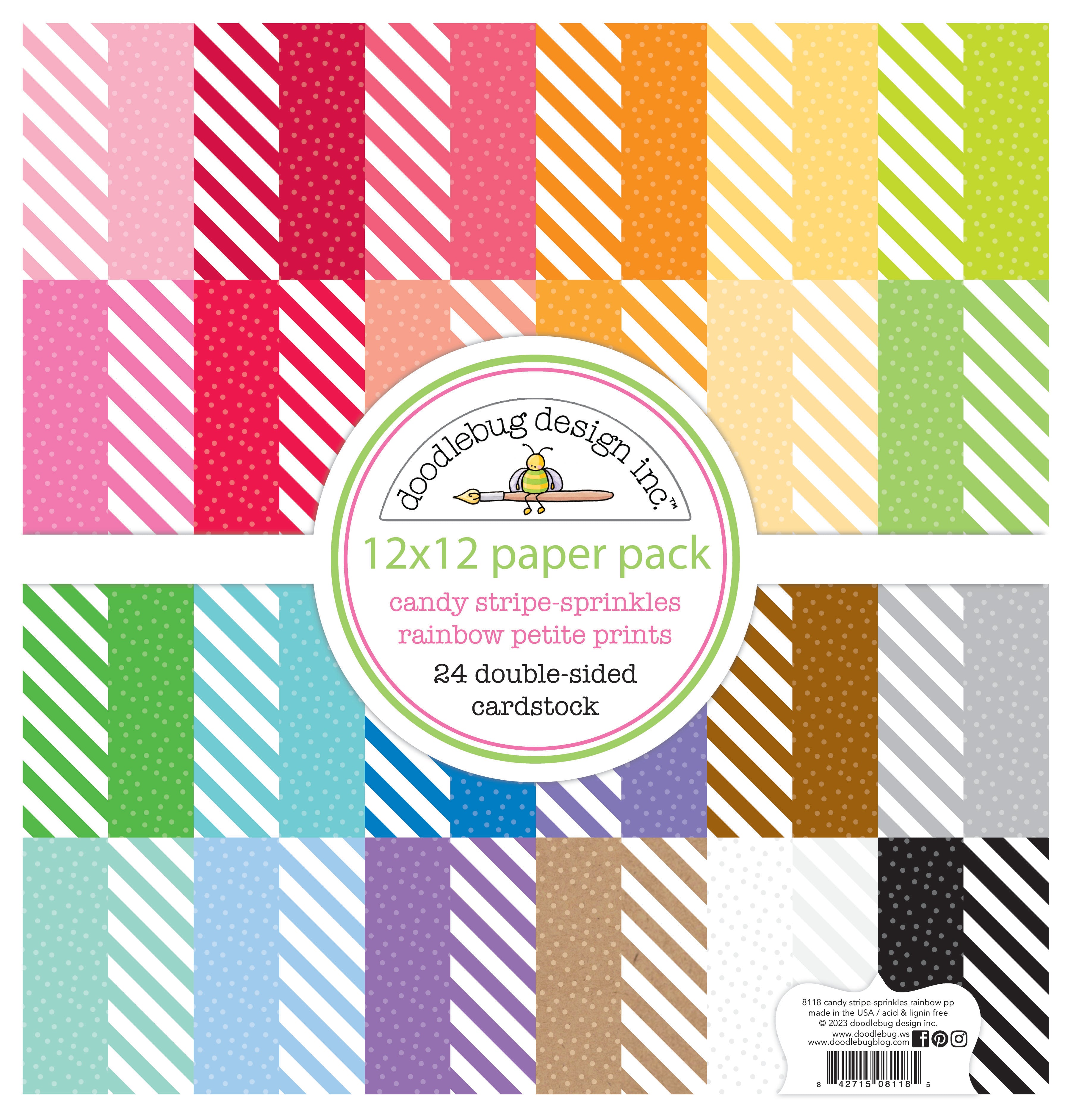 This collection pack includes 24 double-sided 12x12 pattern papers, one each of the 24 colors in the Candy Stripe-Sprinkles Collection.